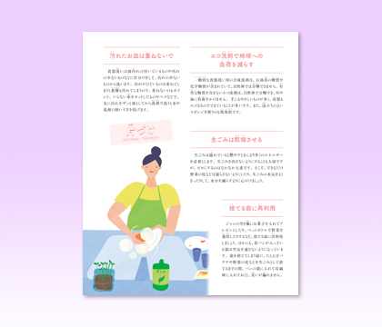 光熱費や食品価格が高騰している昨今。環境にも家計にもやさしい家事をご紹介します。まずは一番身近な台所から……。「買い物」、「収納」、「調理」、「片づけ」に分けて、それぞれの無駄をなくせるポイントを解説します。シンプルで無駄の少ないエコな暮らしは、食卓も心も豊かにしていきます。