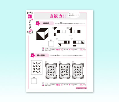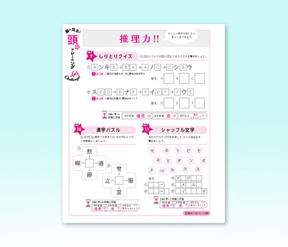 毎回大好評の「頭のトレーニング」企画!今年は発想力、推理力、直観力などの日常で役立つ〝脳力〟を伸ばす問題を掲載。楽しくチャレンジしてみましょう!